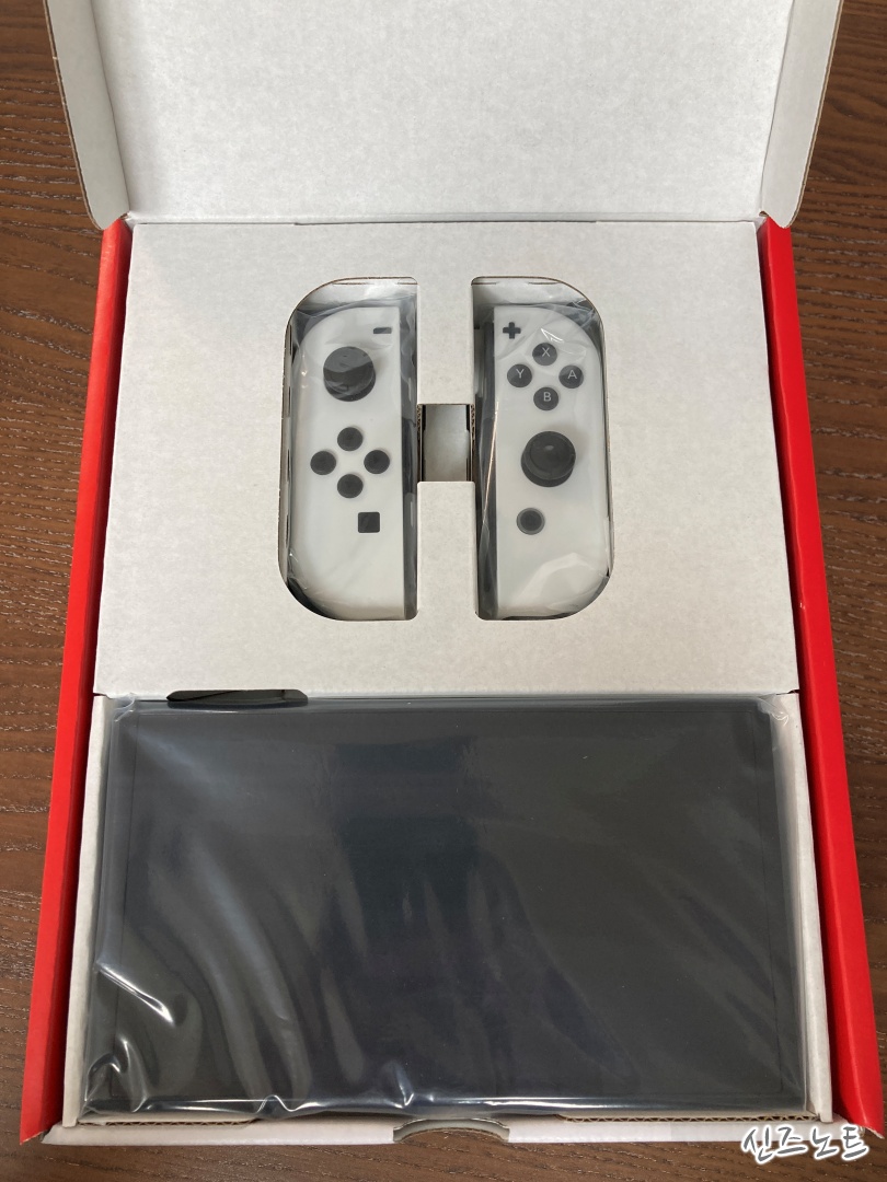 배송박스를 열어보니닌텐도 스위치 OLED 화이트 패키지 전면닌텐도 스위치 OLED 화이트 패키지 후면닌텐도 스위치 OLED 화이트 패키지 측면닌텐도 스위치 OLED 화이트 패키지 상면패키지를 살짝 열어보면..OLED 스위치가 똭~!2021년 10월 제조 조이콘의 시리얼 넘버는 저렇게 시작하나 봄조이콘은 OLED버전이나 배터리개선판이나 동숲에디션이나 모두 똑같이 개량된 조이콘이 들어간다. 제조일만 비슷하다면.독인가독이군독 안쪽이 유광. 벌어진 간격은 더 넓어졌다.말도 많고 탈도 많은 뒷뚜껑. 힌지가 아니라 그냥 떼어내는 스타일.옆면의 USB 슬롯 2개. 그렇다. USB 2.0 이다.;;;기존 배터리 개선판에 있던 USB 3.0 슬롯을 없애고 LAN포트를 추가했다파워 케이블HDMI 케이블이건...
