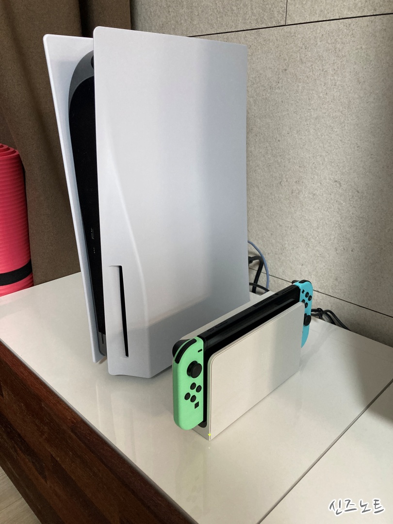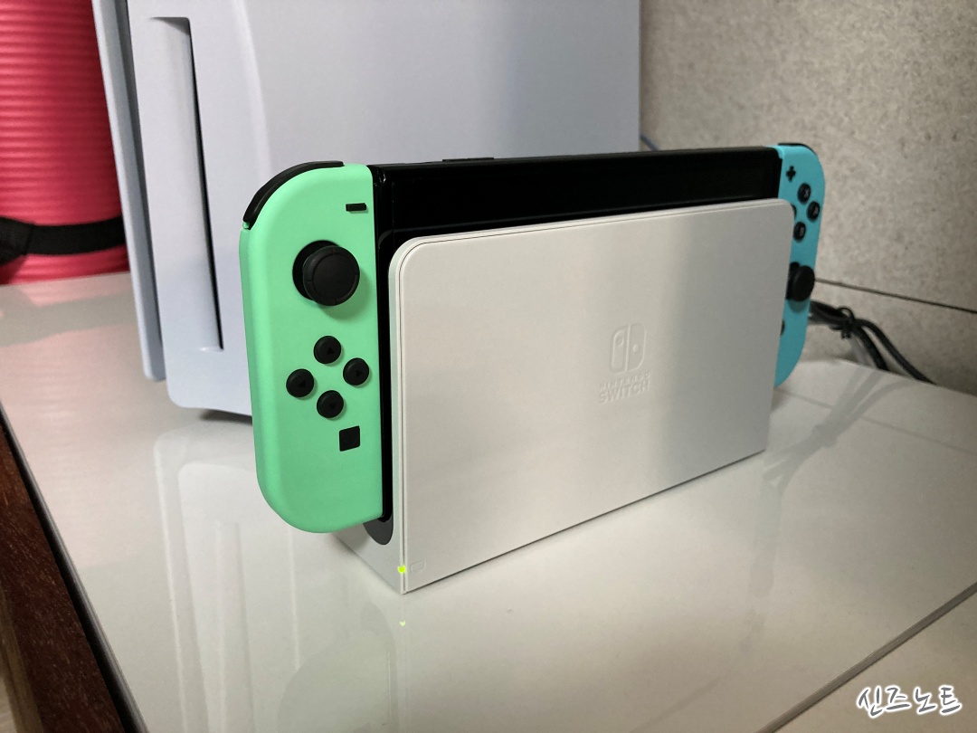 조이콘을 물려서 패드처럼 쓰게 해주는 도구 (이름이 뭐더라)독에 스위치를 끼워보면.. 뭔가 콱하고 팍 들어가는 느낌PS5와 크기 비교기승전 동숲에디션이 최고