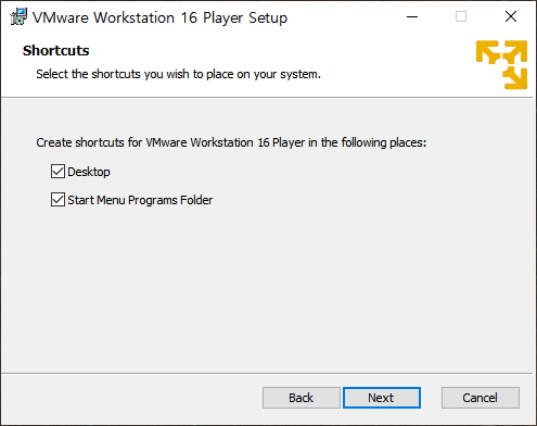 바로가기 아이콘과 시작 메뉴에 폴더를 만들겠습니다. Next.