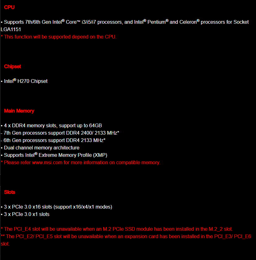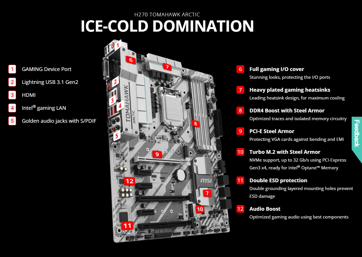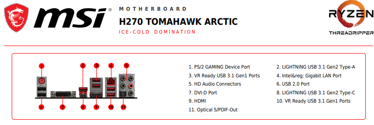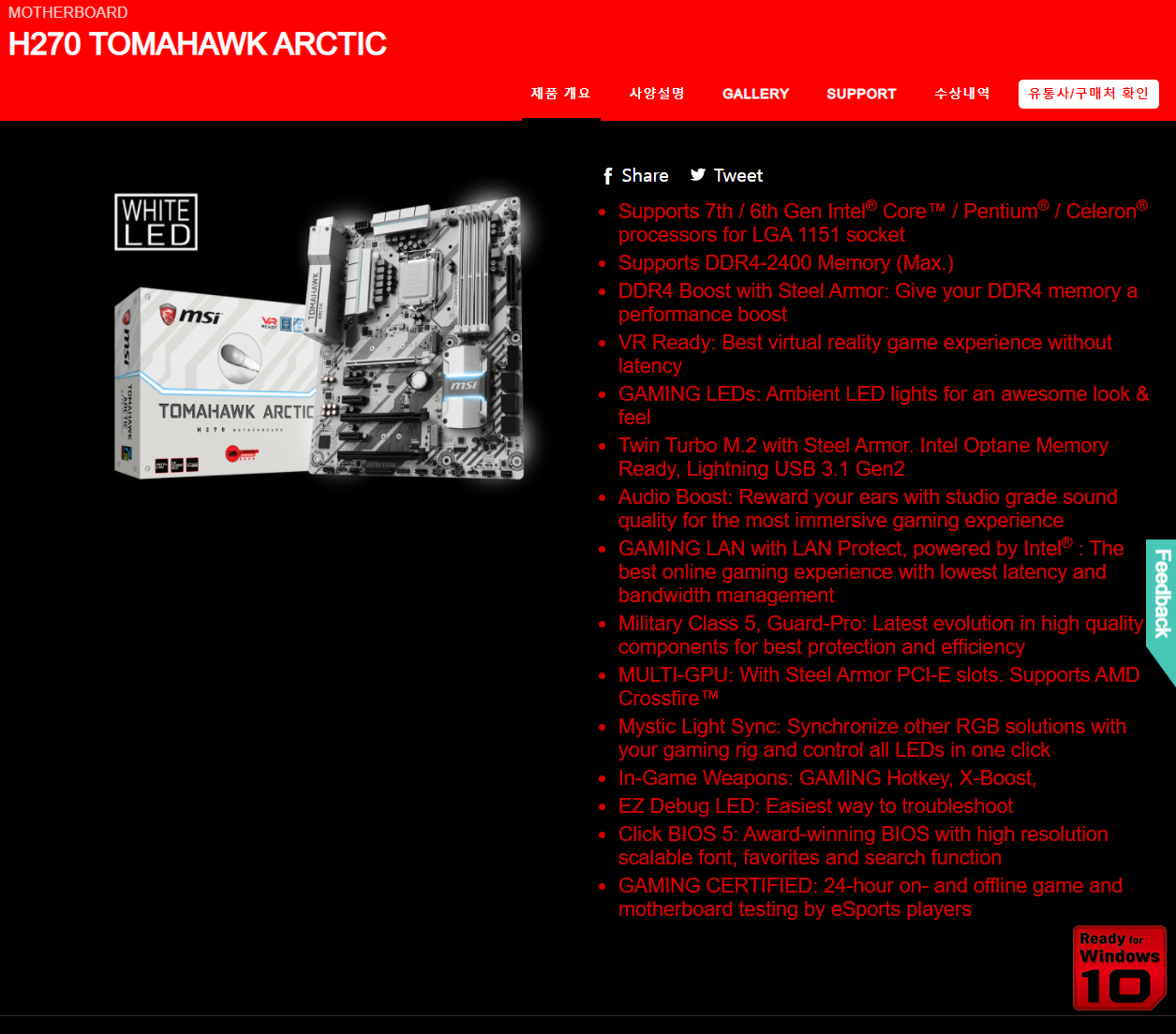 MSI H270 TOMAHAWK ARCTIC 메인보드 스펙을 백업해둔다. 언제 홈페이지에서도 사라질지 모르니..