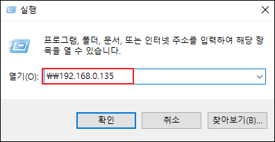 - 윈도우 실행창에서 NAS IP 주소를 입력하여 접속하기(윈도우 실행 단축키: 윈도우키+R)