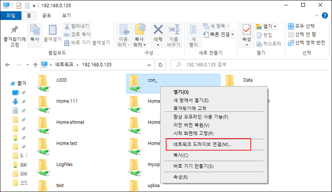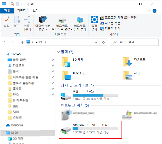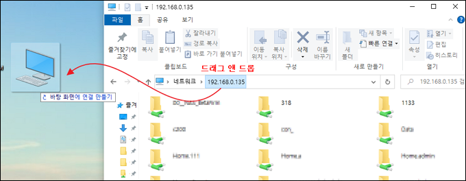 네트워크 드라이브 연결이나 바로 가기를 생성하면 매번 IP주소를 입력할 필요없이 내PC 안의 하드디스크와 같이