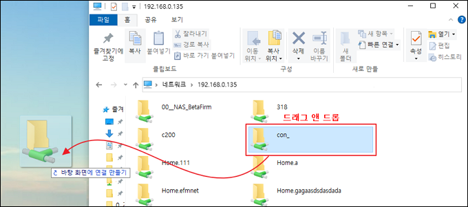 -NAS 서버 전체를 바로 가기로 만들고자 한다면 아래 그림과 같이 NAS IP주소를 클릭하여 바로가기를 생성하고자