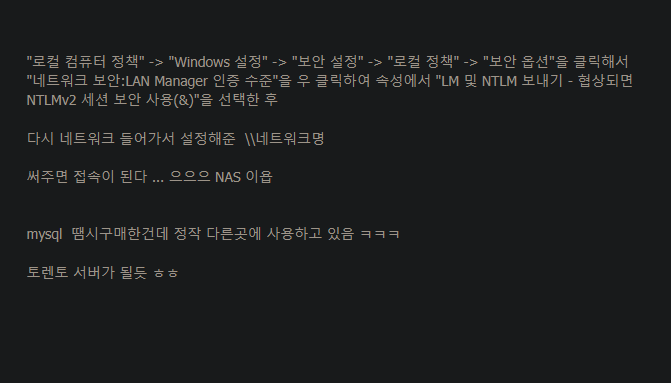 본 게시물은 윈도우 파일공유(SMB)를 통한 NAS 폴더 접속 방법을 설명합니다.