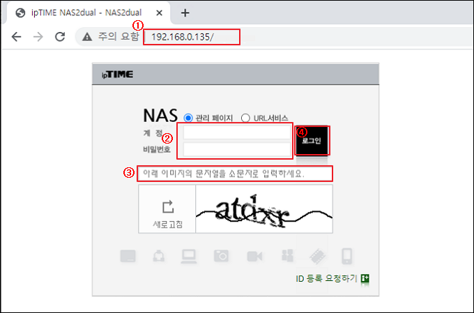 (1) NAS 관리 화면 접속