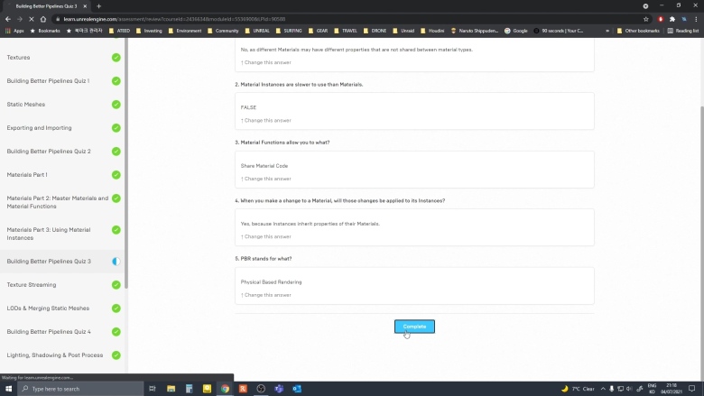 따라하는 사람이 그냥 멍때리면서 보고 대충 넘기지 않게 틈틈이 퀴즈도 적절히 배치해두었습니다. 이 퀴즈를 제대로 안풀면 코스완료가 안되고 완료시에 받는 배지를 못받습니다. 배지 뭐 실질적으로는 별 의미 없지만 못받으면 뿌듯함이 덜해집니다.