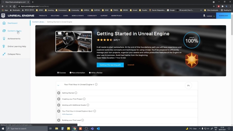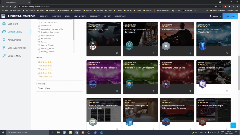 일단 아주 처음 배울 때에 필요한 대부분의 자료는 에픽게임스 교육용 웹사이트에 있습니다.초보용 강좌를 따라가면 교육웹사이트 안내, 클라이언트 및 언리얼엔진 설치 그리고 첫 레벨 만들기까지를 꽤 짧은 시간내에 터득할 수 있습니다. 이 웹사이트에 아주 기본적인 내용부터 전문적인 내용까지 아주 방대한 자료가 마련되어 있습니다. 그리고 여러각국의 언어로 번역도 잘 되어 있는데, 한글화가 아주 잘되어 있는 것을 보고 우리나라 게임업계의 위상을 느낄 수 있었습니다.