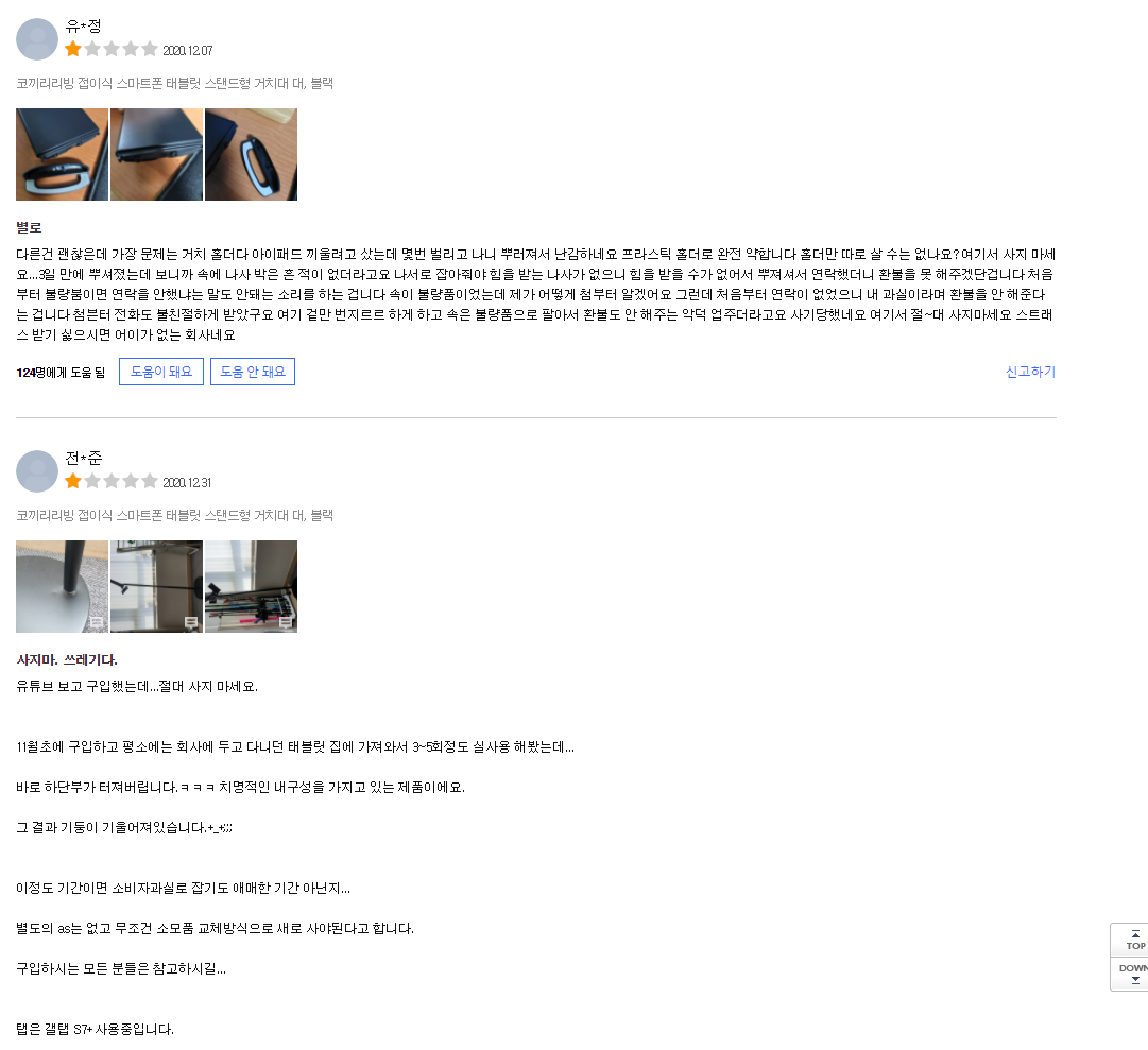 태블릿 스탠드 제품 퀄리티가 전반적으로 별로인 것 같아 제품을 선뜻 고르기가 쉽지 않았다.