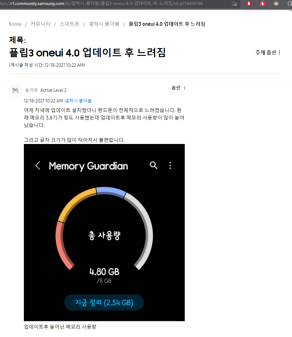 설마 판올림 시 ONE UI의 메모리 점유량을 점점 올려서 결국 기기 업그레이드를 유도하는 쪽으로 가지는 않을지 심히 우려된다.