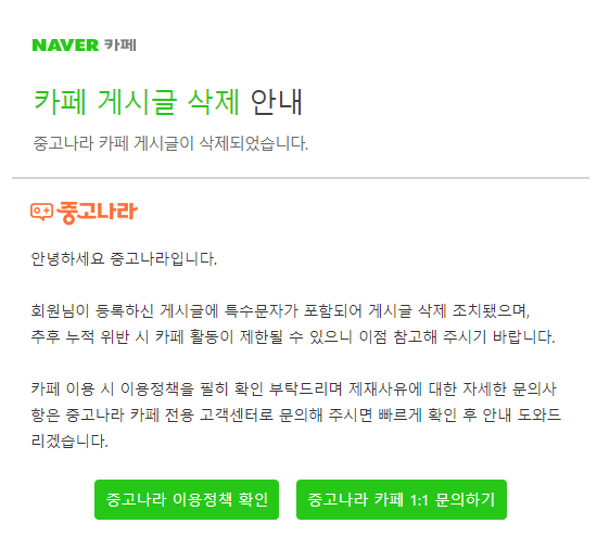 또한 판매글에 대한 지나친 제재가 중고나라 스스로를 무너뜨리고 있다.