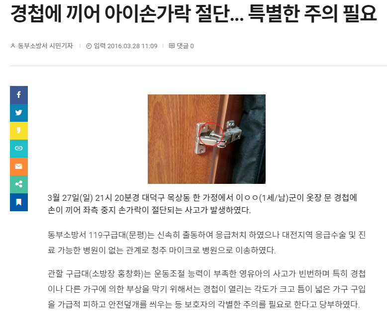 경첩에 대해서 안전기준을 제대로 정립했으면 하는 마음에
