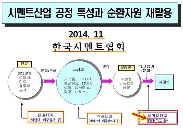 ▲ 시멘트기업들은 시멘트협회 자료에 탈황석고를 사용한다고 해놓고는 라돈이 함유된 인산석고를 사용하여 국민을 속였다. ⓒ 한국시멘트협회