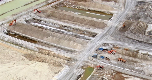 ▲ 검은 비닐 아래 2800만 톤이 넘는 인산석고가 가득 쌓여 있고, 중장비들이 작업 중이다. ⓒ 최병성