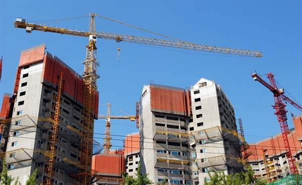 ▲ 오늘도 전국에서 쑥쑥 올라가는 아파트 대부분은 방사능 라돈이 함유된 인산석고가 들어간 시멘트로 지어지고 있다. ⓒ 최병성