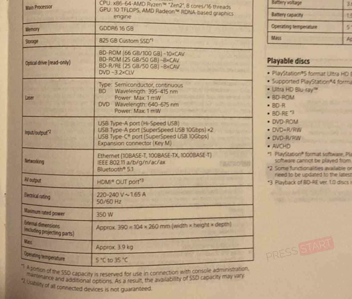 새로운 CFI-1202B 디지털 PS5 사양 시트
