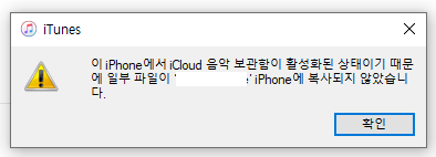 아래의 메세지창이 뜨면서 음악을 넣을 수 없는 오류가 발생했다.