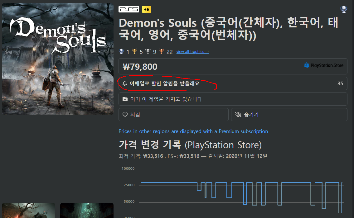 플레이스테이션 게임 디지털 다운로드 제품이 할인이 들어가면 바로 알려주는 사이트가 있다.