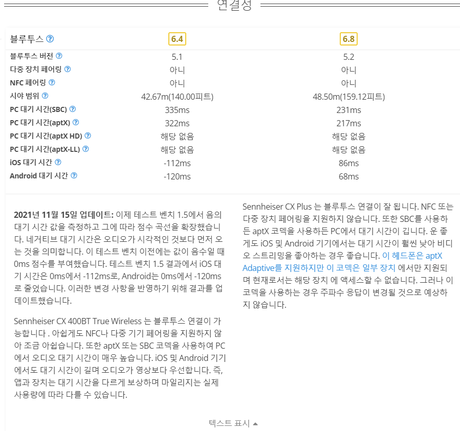Sennheiser CX400BT와 CX PLUS TW 비교사용기