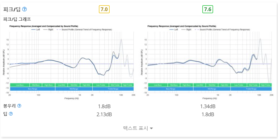 주파수 응답 일관성에서는 CX Plus TW가 더 높은 결과가 나옴