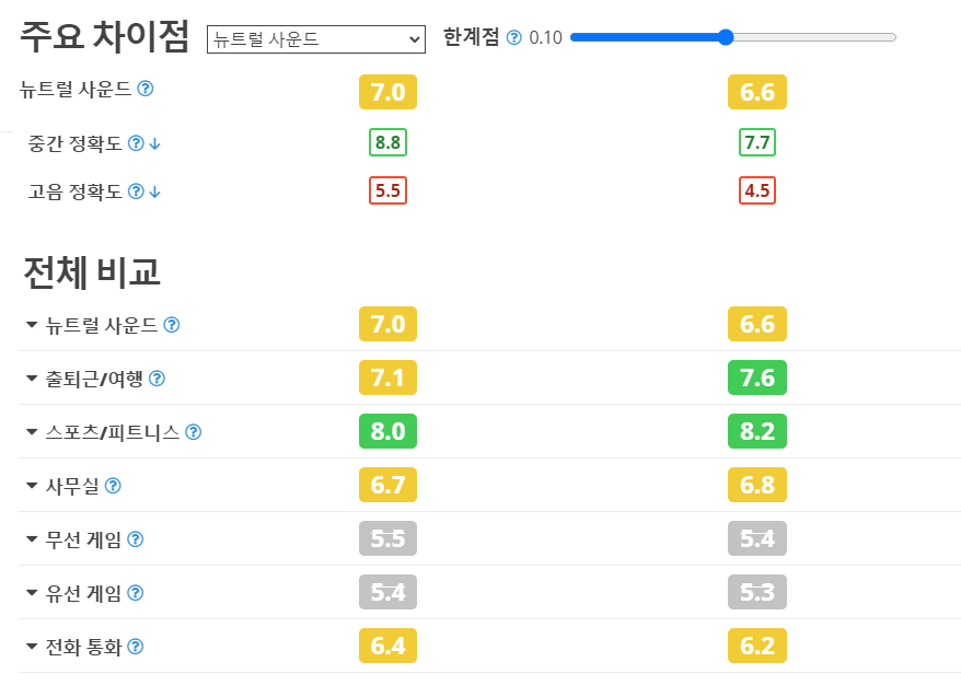 저음 정확도에서는 CX Plus TW가 더 좋은 결과가 나옴