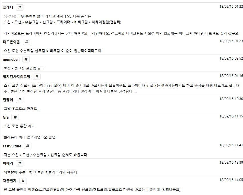 그런데 화장 순서에 대해서는 의견이 상당히 갈리는 듯 했다.
