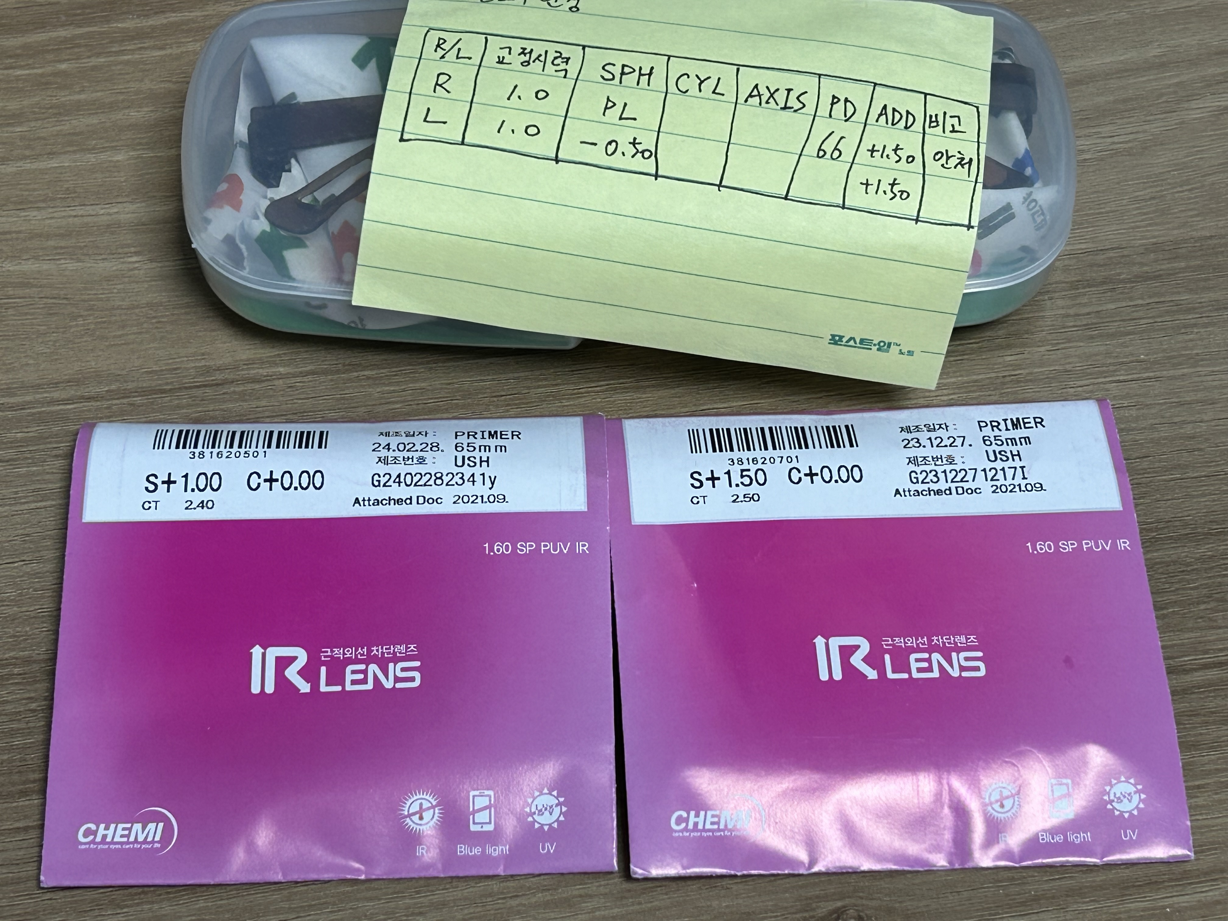 그래서 같은 렌즈로 바꾸려고 했는데 검색해보니 그사이에 조금 더 좋은 것 같은 새 제품이 케미에서 출시했다고 해서, 그 렌즈로 안경을 맞춰봤다. 새 제품의 이름은 '케미 IR 렌즈' 라고 한다.
