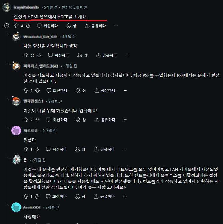 - 설정에서 HDCP를 끌 것
