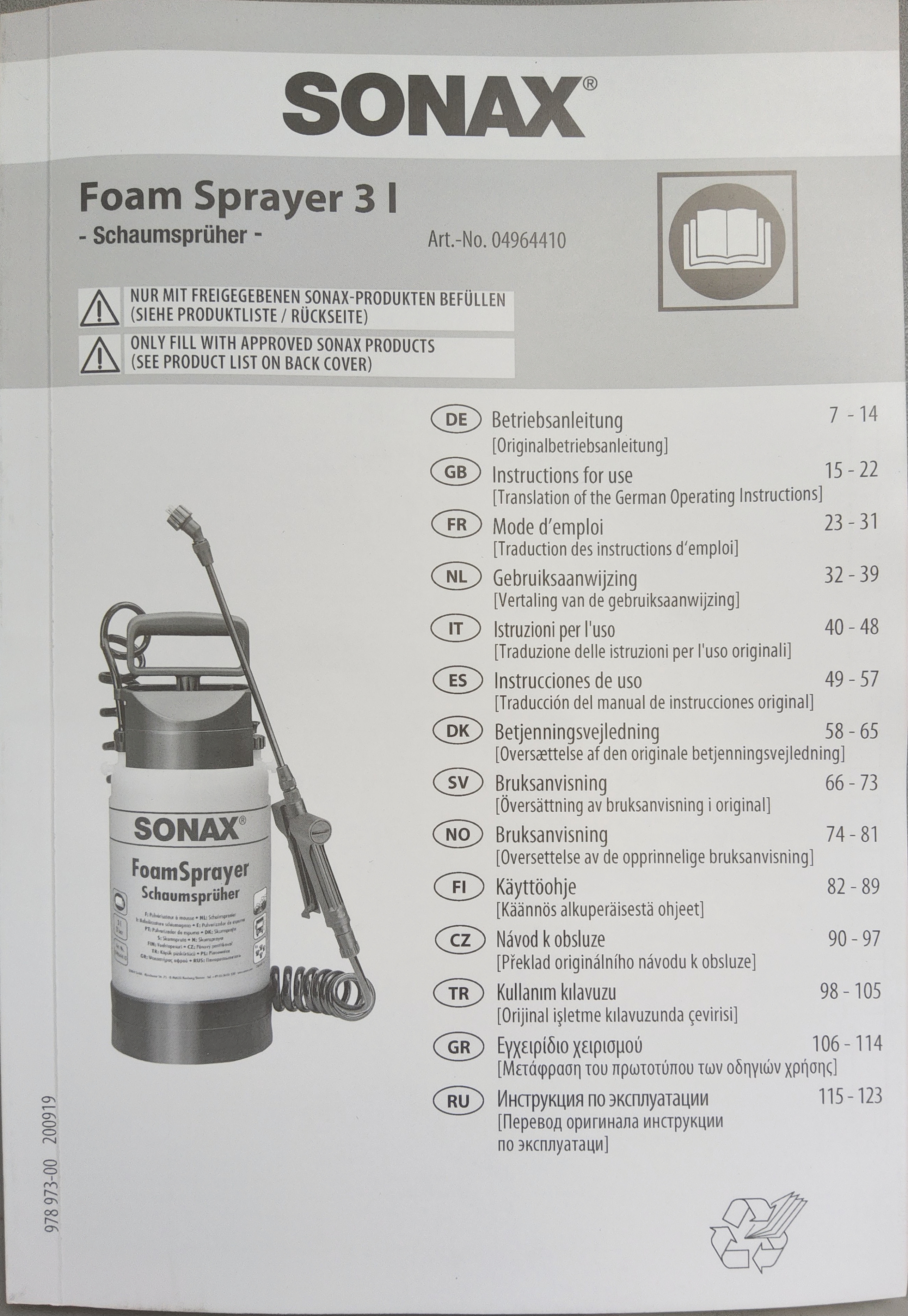 소낙스 폼스프레이어 3L 제품을 구입하고 매뉴얼을 백업한다.