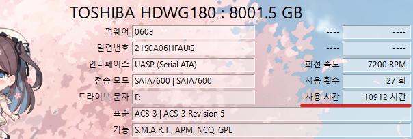 디스크 정보를 보니 사용시간이 무려 10912시간이었다..!!