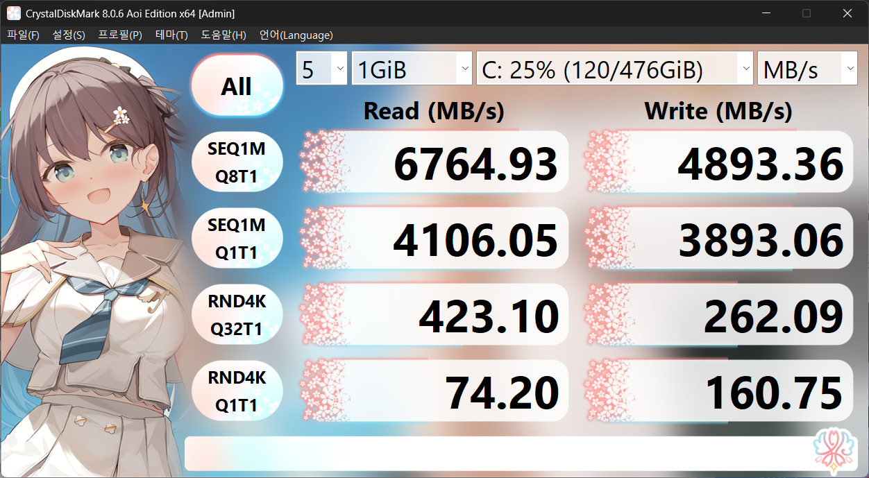 512GB 모델로 구매했는데 ssd 속도를 크리스탈디스크마크로 테스트해봤더니 Gen4속도가 나왔다.