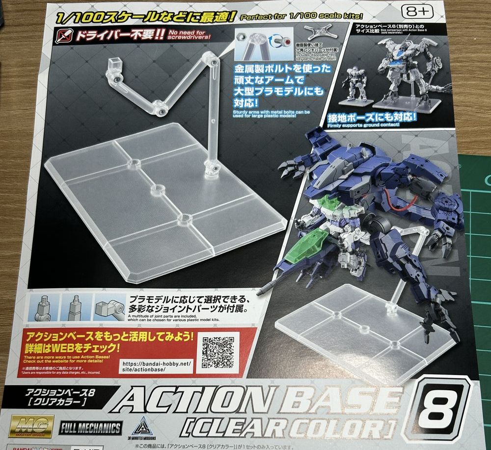 반다이 액션베이스 8은 MG, 1/100 급을 디스플레이할 수 있는 제품이다.