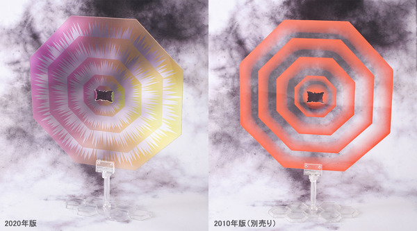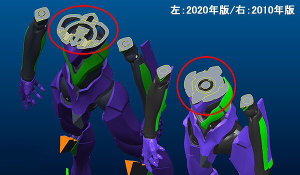 2010년판에서는 머리 부분 교체로 재현되고 있던 「폭주시의 개구」 는, 2020년판에서는 교환 없이 입의 개폐가 가능하게 되었다. 한층 더 신기믹이 되는 「흉부 장갑의 개폐」 도 탑재되고 있다. 이처럼 날씬하고 인간적인 바디 본체에 개폐·전개 특수 효과를 담을 수 있게 된 것도 본 아이템으로 주목해야 할 점이다. 『에반게리온 신극장판:서』에서의 첫호기의 첫 전투시, 제4의 사도가 전개한 「AT 필드」 이펙트 도 일신! 2010년판과 사이즈나 받침대는 공통이지만, 컬러링이나 프린트 디자인이 극중에 더 가까운 것이 되었다. 반투명 PET 소재를 사용하고 중앙 구멍에 대응 손목 파츠를 사용하여 제 4 사도의 AT 필드를 열어 열 이미지가 되살아난다.