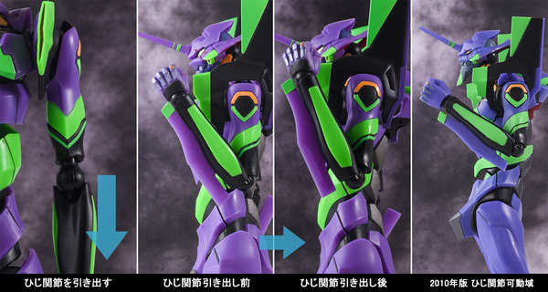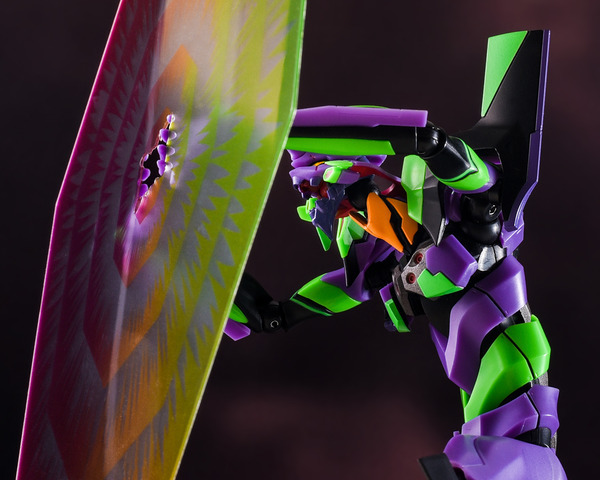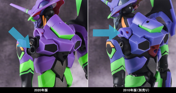 2010년판에서는 머리 부분 교체로 재현되고 있던 「폭주시의 개구」 는, 2020년판에서는 교환 없이 입의 개폐가 가능하게 되었다. 한층 더 신기믹이 되는 「흉부 장갑의 개폐」 도 탑재되고 있다. 이처럼 날씬하고 인간적인 바디 본체에 개폐·전개 특수 효과를 담을 수 있게 된 것도 본 아이템으로 주목해야 할 점이다. 『에반게리온 신극장판:서』에서의 첫호기의 첫 전투시, 제4의 사도가 전개한 「AT 필드」 이펙트 도 일신! 2010년판과 사이즈나 받침대는 공통이지만, 컬러링이나 프린트 디자인이 극중에 더 가까운 것이 되었다. 반투명 PET 소재를 사용하고 중앙 구멍에 대응 손목 파츠를 사용하여 제 4 사도의 AT 필드를 열어 열 이미지가 되살아난다.