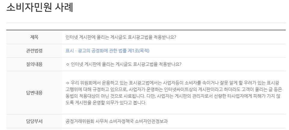 위와 같이 "소비자를 속이거나 잘못 알게 할 우려가 있는 표시광고행위"라는 내용이 있었다.