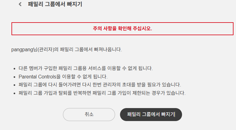 그럼 아래와 같이 "패밀리 그룹에서 빠지기" 가 가능하다.