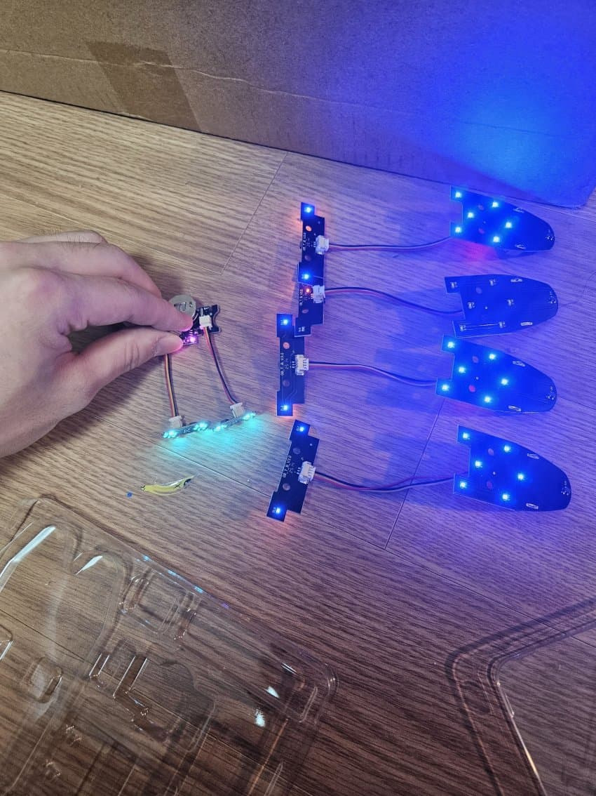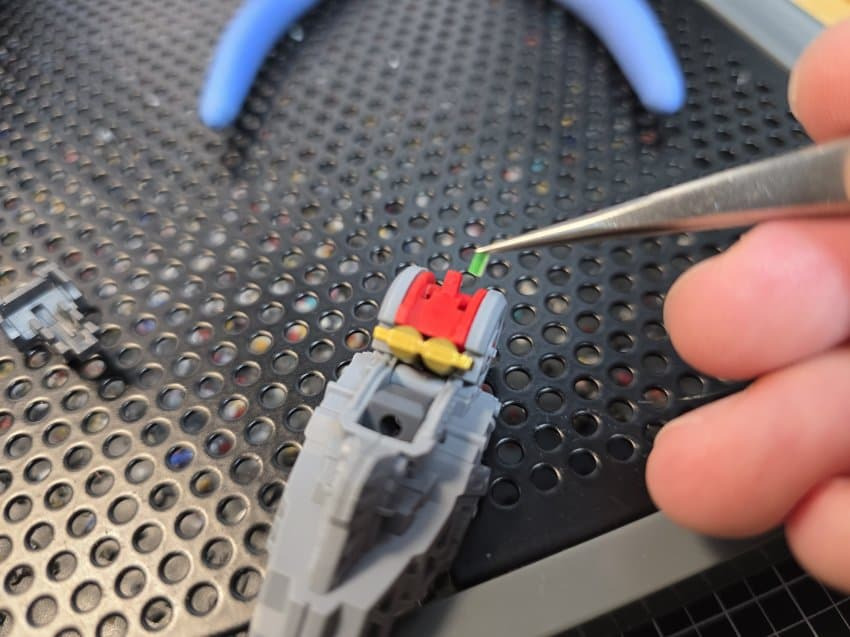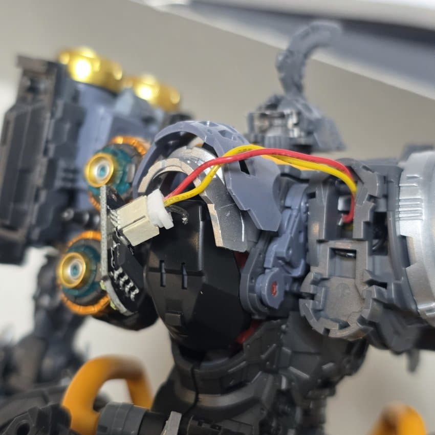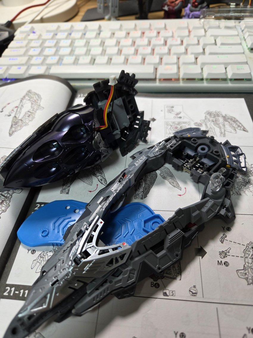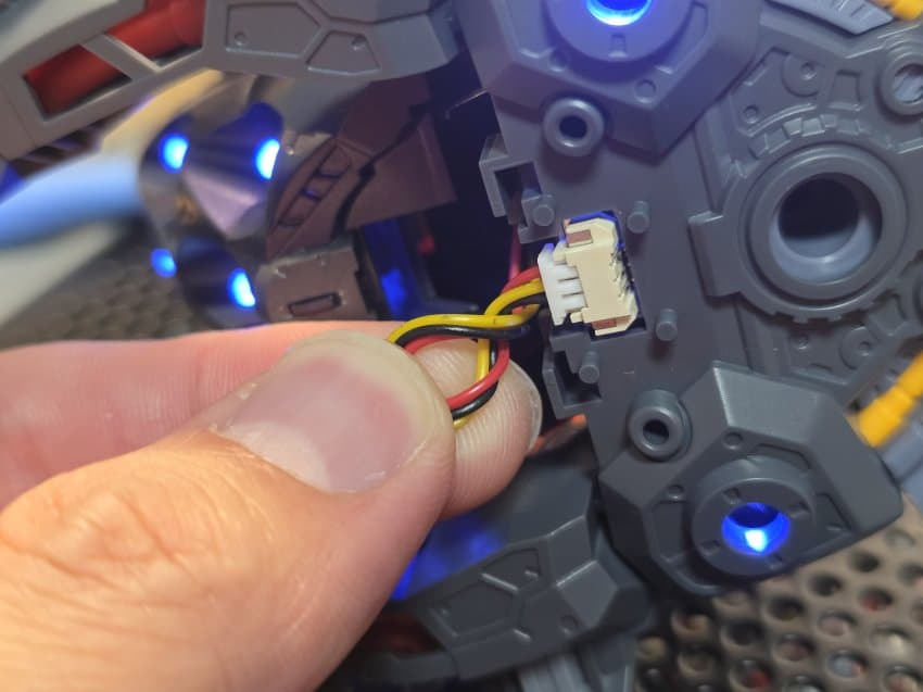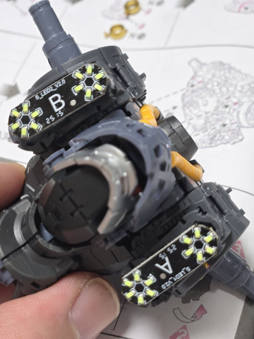 3 led : 가슴부분은 약간의 개조가 필요함 F28 F29번 led선 나오는 윗부분 짤라내면 조립이 수월해짐 워낙 led 커넥터 넣는 공간자체가 협소해서 조립난이도 올라감. 여기서 가슴 제대로 안 여물면 외장까지 가서도 개고생하므로 반드시 딱 여물고 가자
