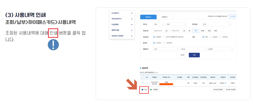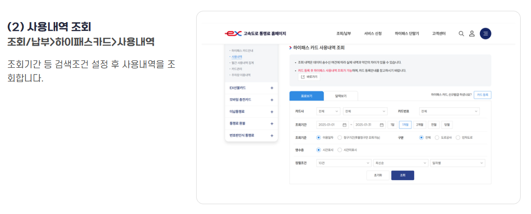 그리고 하이패스(hipass.co.kr)로 들어가 사용내역 조회로 들어간다.