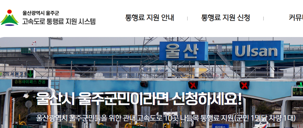 그럼 울주군 고속도로 통행료 지원시스템(링크)으로 가서 통행료 지원 신청을 한다.