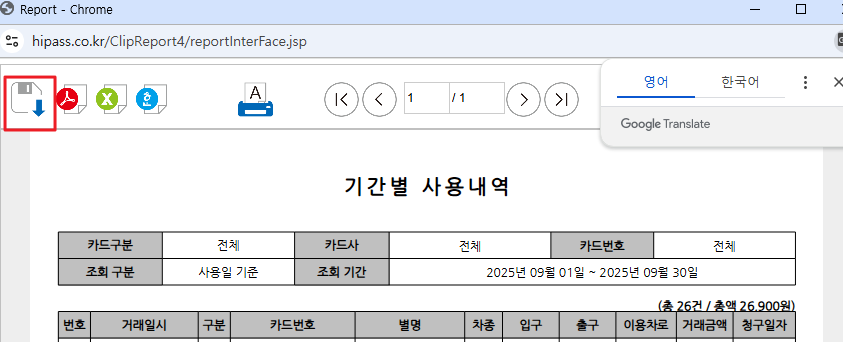이렇게 해서 하이패스 카드 내역 PDF는 생성이 끝난다.