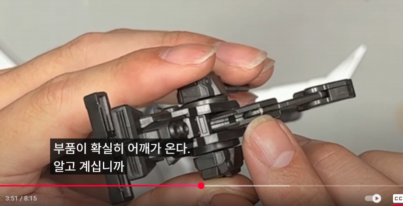 유튜브 (여기 링크) 에서 발견한 것인데 팔뚝을 조립하면서 아래 사진과 같이 곳곳에 크랙이가고 깨지는 현상이 발생했다.