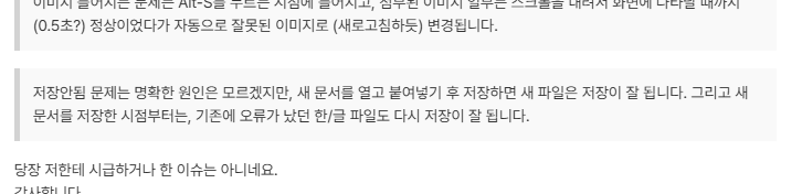 (한글과컴퓨터는 프로그램에 번역어시스트같은 추가기능에 신경쓰는 것보다 이런 크리티컬한 오류부터 해결했으면 한다.)